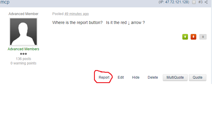 mcp 36 Posted June 19, 2019 Share Posted June 19, 2019 Where is the report button? Is it the red ↓ arrow ? Quote Link to post Share on other sites
